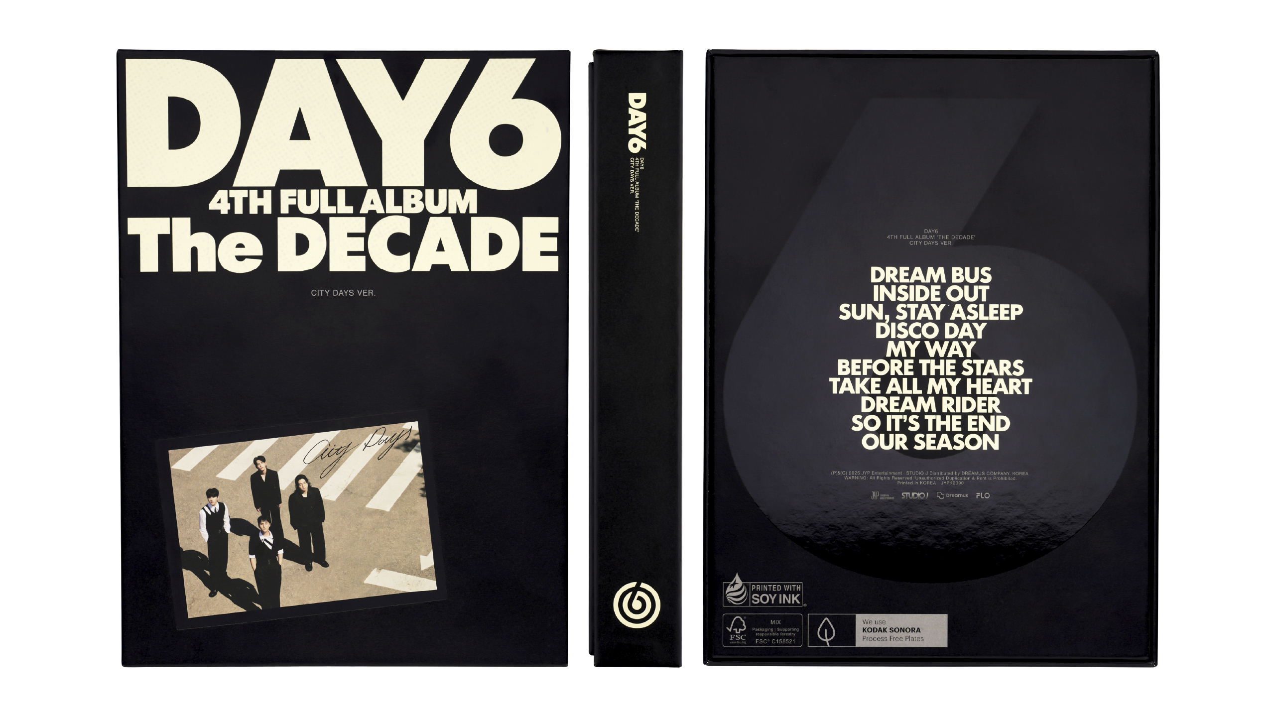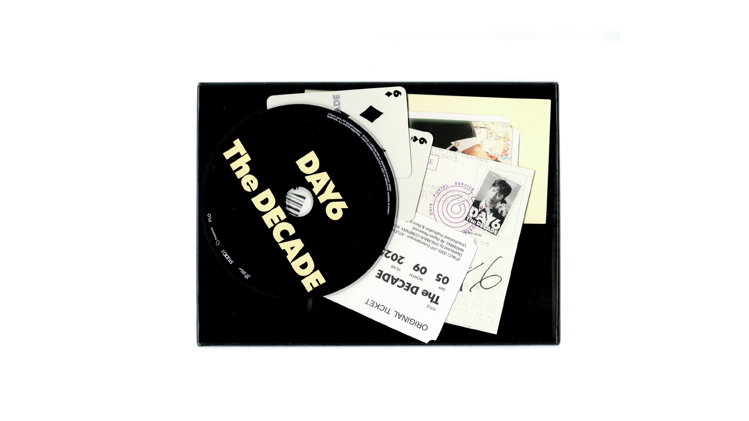 밴드 데이식스(DAY6)의 네 번째 정규 앨범 THE DECADE의 앨범 디자인을 진행했다. 10년의 여정을 아카이브 박스 형태로 담아내는 것을 콘셉트로, 다양한 구성 요소들이 하나의 흐름 안에서 유기적으로 어우러지도록 기획했다. 키 비주얼은 볼드한 타이틀 타이포그래피와 자유로운 캘리그래피를 조합해, 캐주얼하면서도 패셔너블한 인상을 완성했다.